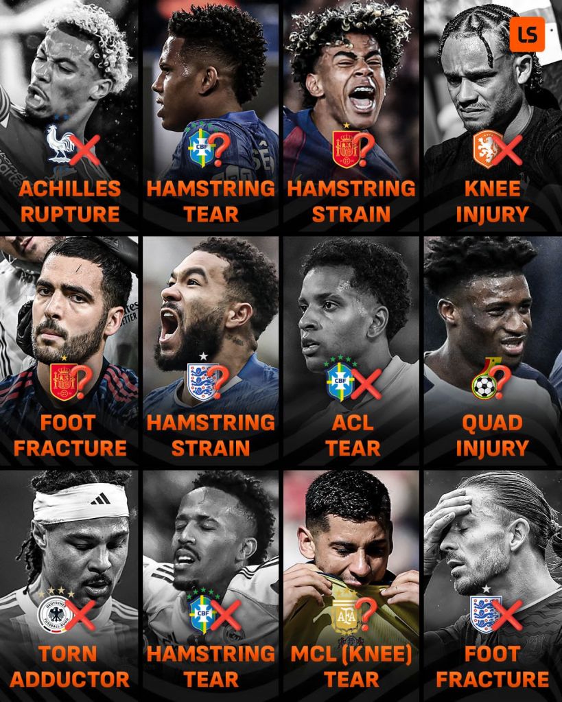 Nan yon sezon foutbòl entans ki chaje ak match kote anpil konpetisyon ap jwe tankou : chanpyona majè yo, europa league, Ligue des Champions sitou nouvo fòma a ki vin ajoute plis match pou jwè yo.Sa vin fè jwè foutbòl yo fè fas ak anpil pepen fizik soti nan kòmansman pou rive nan fen sezon an kote sa pi frekan , men sa ki bay enkyetid nan sikonstans sa se koup di mond lan ki ap apwoche e chak nasyon yo ap gen pou konte sou jwè kad yo , men anpil nan yo frape pa flewo sila a tankou (Rodrygo, Lamine Yamal, Eder Militao, Xavi Simons, Estevao, Ekitike, Mbappé, Serge Gnabry…) pou’n site sa yo sèlman.